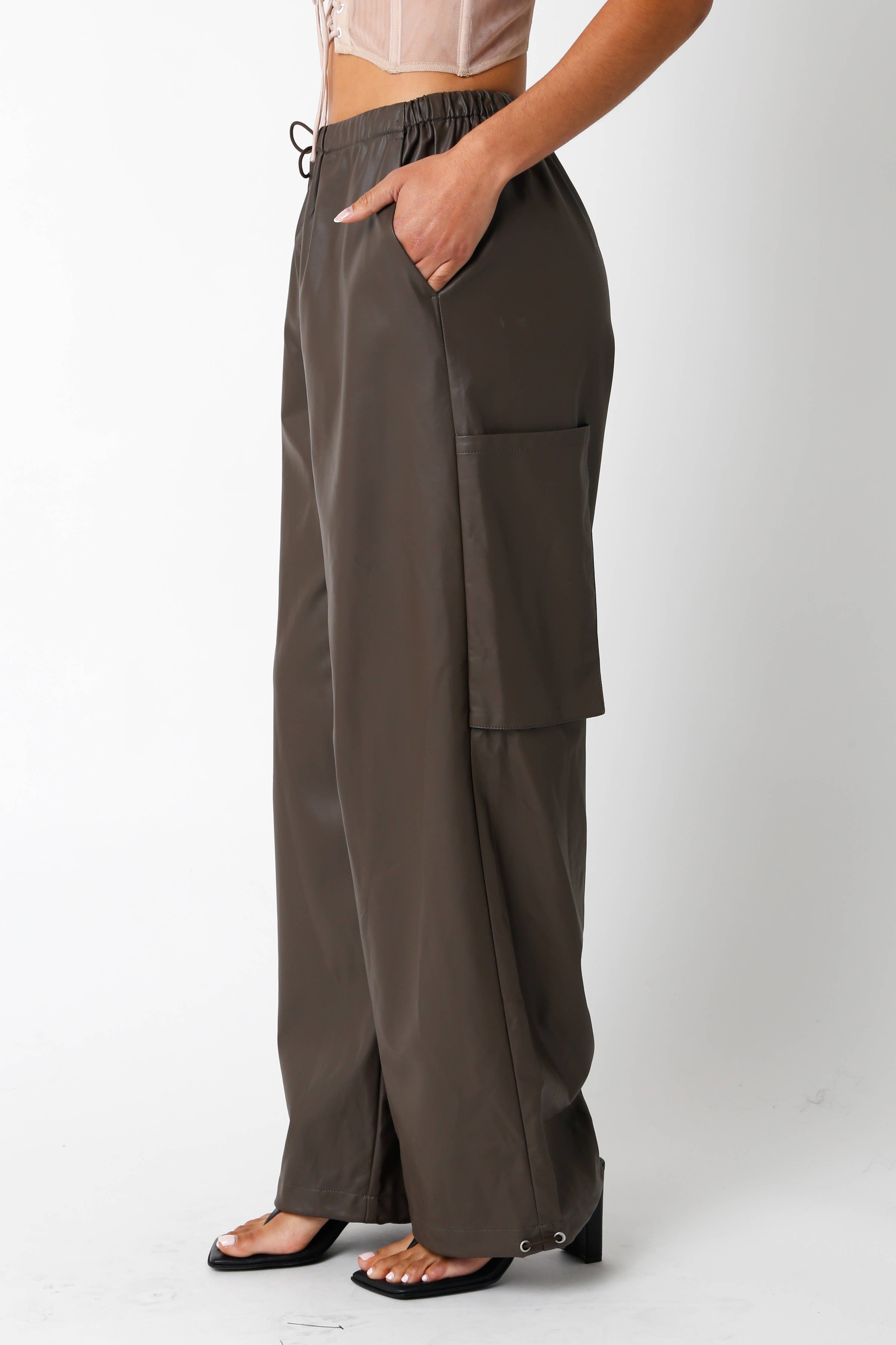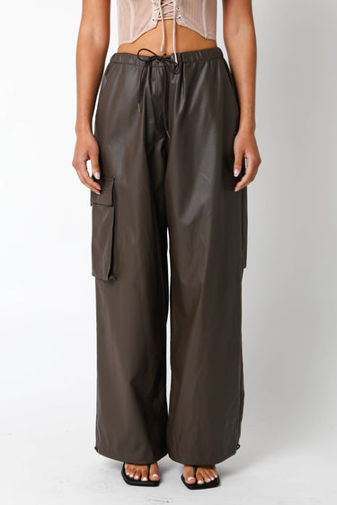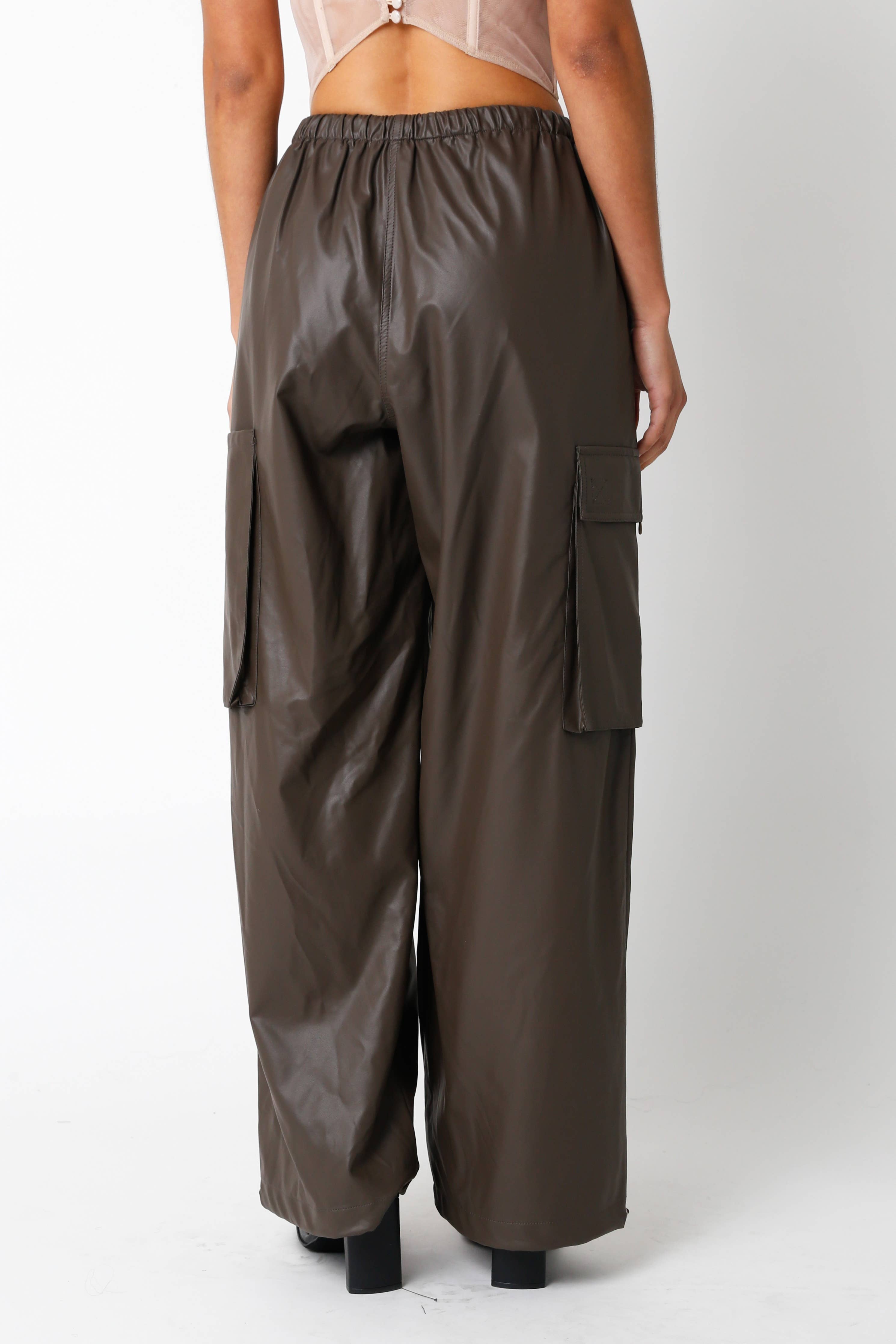 Street style meets modern luxury in The Nova Leather Cargo Pant. Designed in a supple faux leather with a relaxed, wide-leg fit, these cargos deliver instant edge and effortless cool. The utilitarian cargo pockets and adjustable drawstring waist combine form and function, while the sleek brown finish elevates any look.