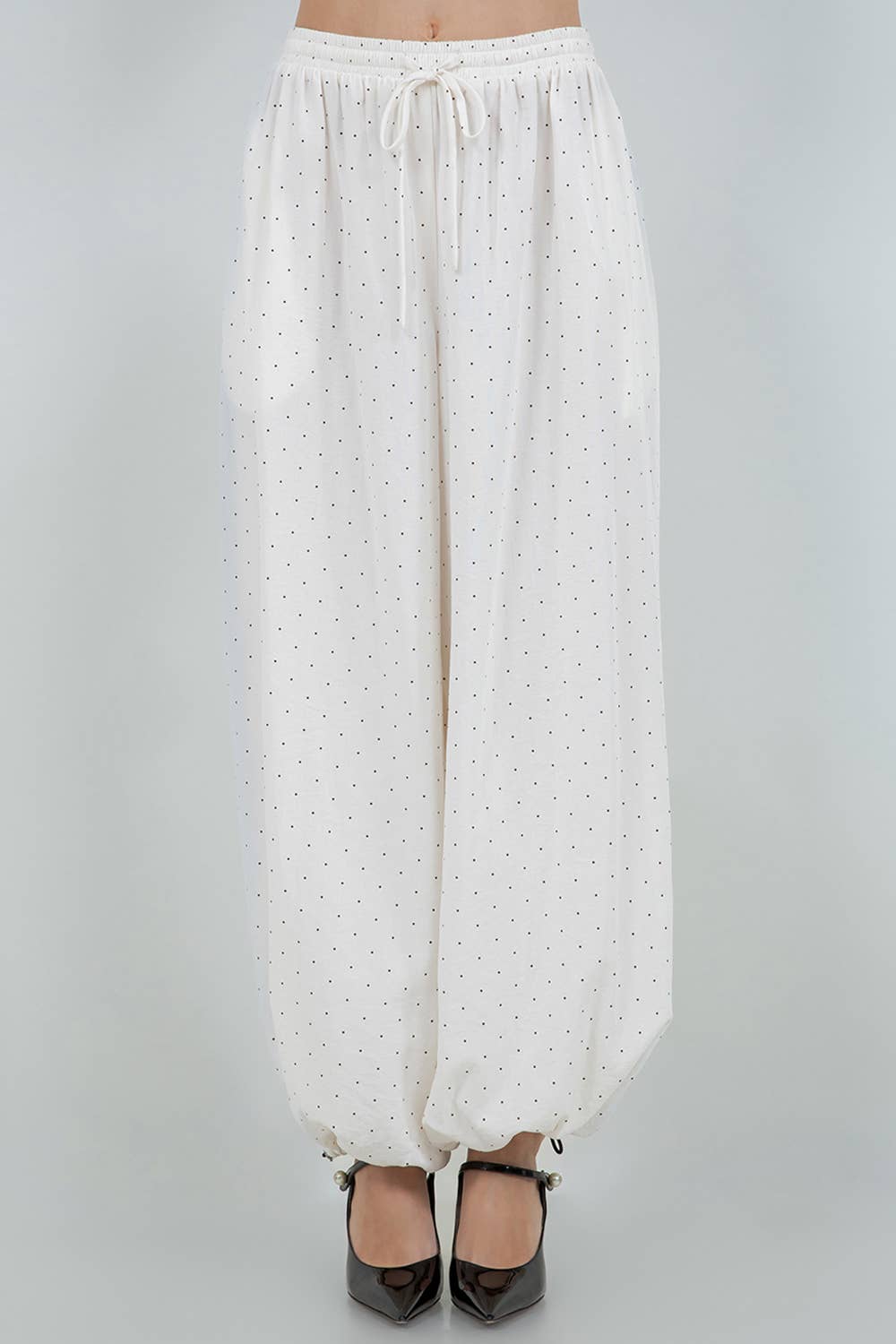Designed for real-world comfort without sacrificing edge, these pants feature a balloon genie silhouette that creates a modern, fluid line. The volume at the hip and thigh tapers gracefully toward the hem, giving you options to switch up your look in seconds. When you want a softer, everyday drape, wear them with a softly tapered finish. Craving drama? Pull the adjustable bottom drawstrings to fashion full balloon volume—perfect for a night out or a standout weekend look.