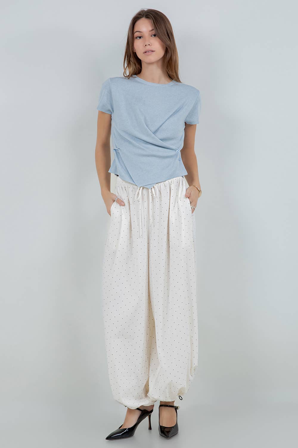 Flynn Pants are where playful personality meets everyday wearability. The polka dot statement you’ll reach for again and again, engineered into a relaxed yet fashion-forward silhouette that drapes beautifully with every move.