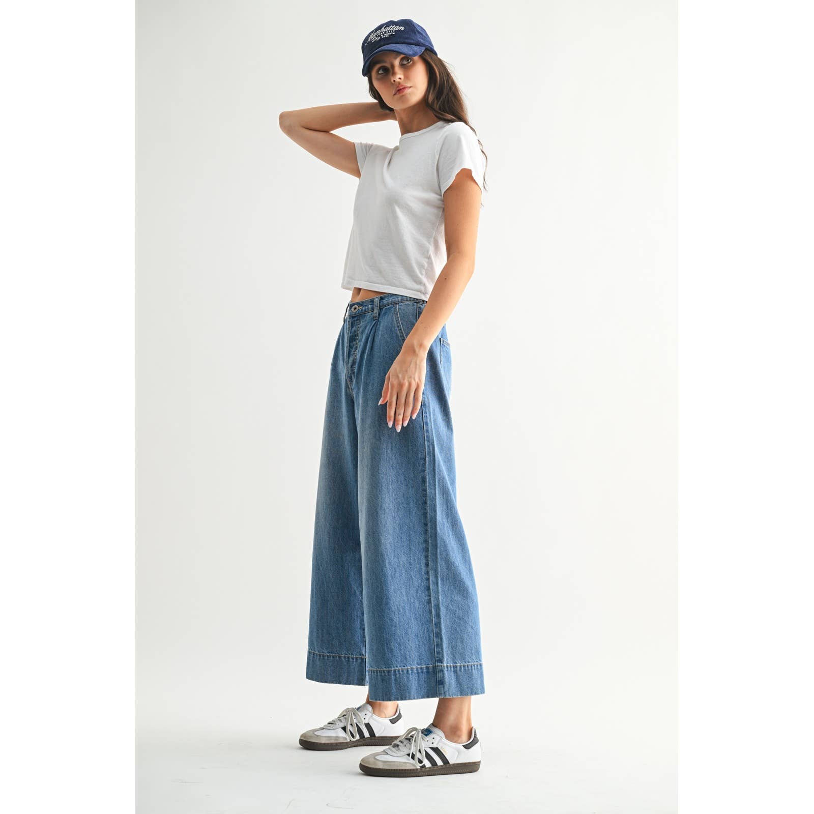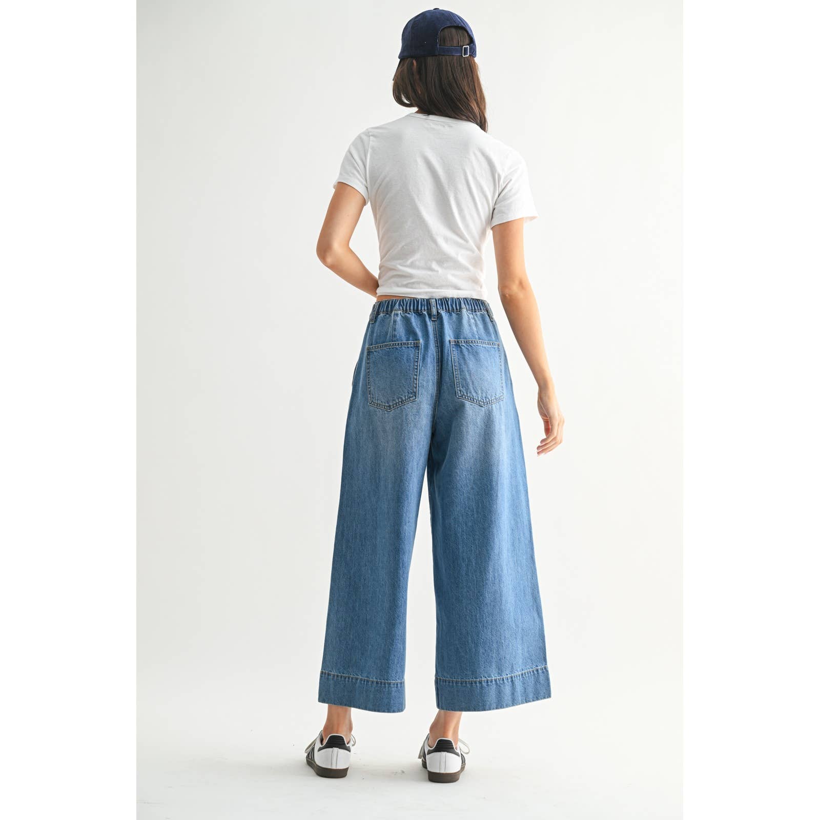 Cropped Wide-Leg Denim Pants – Medium Blue