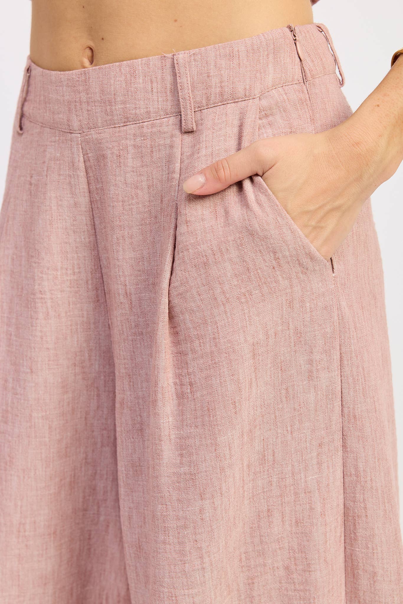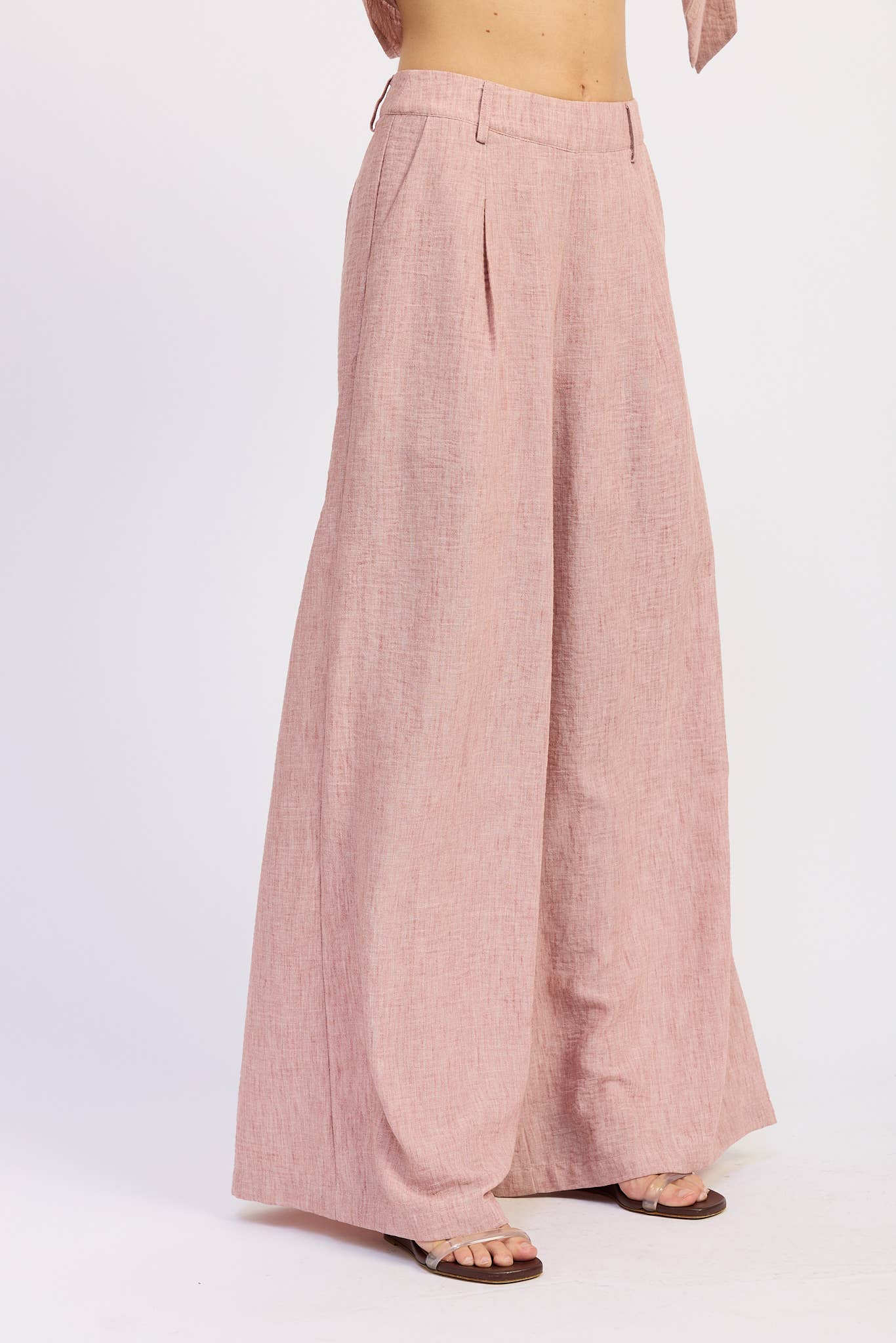 Refresh your warm-weather lineup with the Blush High-Waisted Wide Leg Trousers—a refined, wearable solution that pairs beautifully with a fitted top and elevates everyday moments into polished, confident looks.