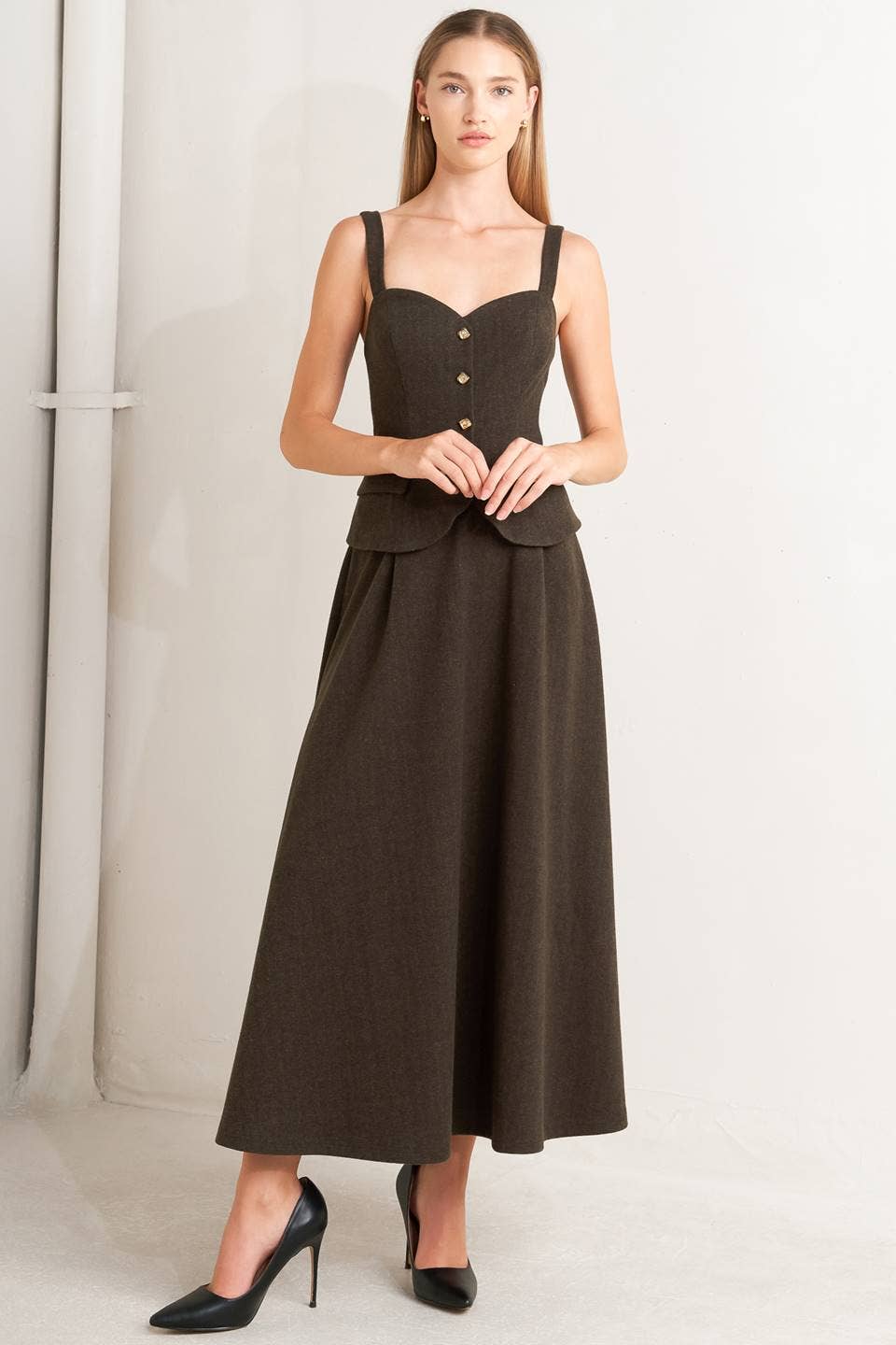Romantic, polished, and effortlessly flattering — this Yulia Dress is the statement piece your wardrobe will reach for again and again. Designed with a sculpted sweetheart neckline, adjustable straps, and a fitted bodice, it accentuates your shape beautifully before flowing into a feminine circle skirt.