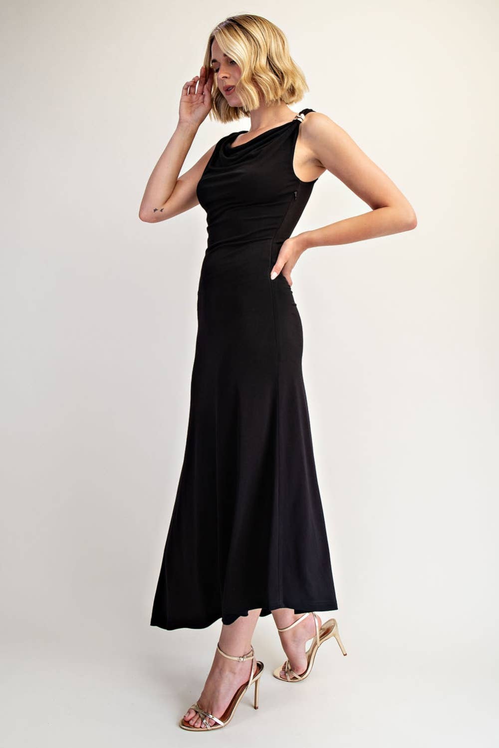 Crafted in a soft, comfortable fabric with just the right amount of stretch, this dress hugs your curves while letting you move with ease. Pair it with strappy heels and statement jewelry for an elevated evening look, or keep it minimal for understated glamour.