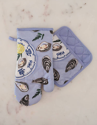 Oysters Cotton Oven Mitt + Pot Holder Set