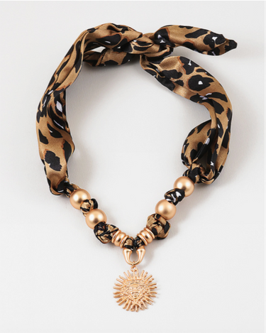 Leopard Scarf Necklace with Sun Medallion Pendant