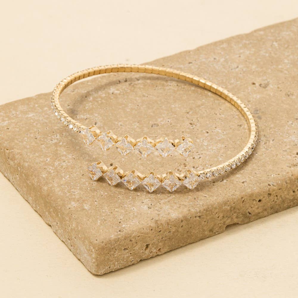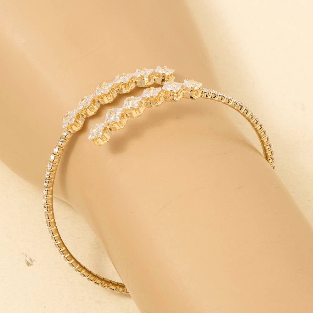 Make a statement, this cuff bracelet boasts a magnificent square cubic zirconia tennis chain design. This cuff bracelet is ideal for both casual and formal events, adding a touch of sophistication to any outfit.