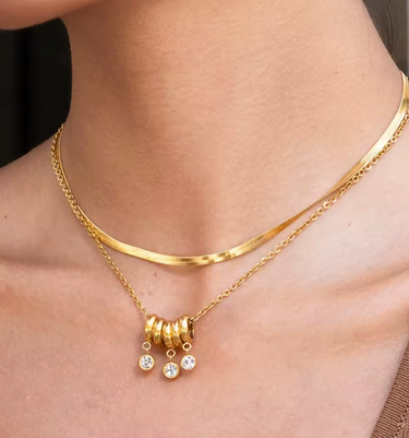 A delicate statement designed to catch the light with every movement. The Celeste Triple Charm Necklace features polished gold-tone discs accented with three shimmering stone charms, suspended from a fine chain for subtle sparkle and dimension. Elegant yet understated, it’s the perfect finishing touch—whether worn alone or layered with your favorite chains.