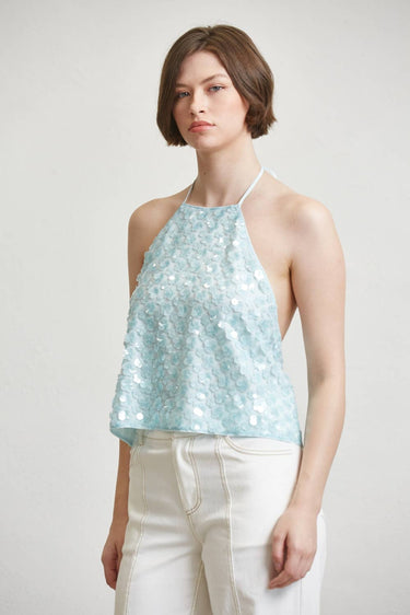 Floral Sequin Halter Backless Top