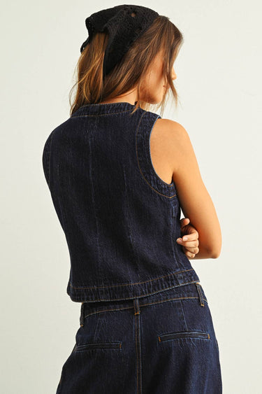 Cool, effortless, and quietly powerful. This sleeveless denim set is your one-and-done outfit for days when you want to look styled without overthinking it. Designed with a structured button-front bodice and relaxed wide-leg fit, it strikes the perfect balance between polished and laid-back.
