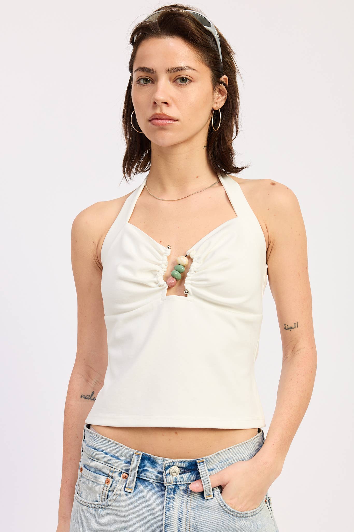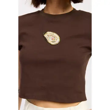 The subtle embellished accent at the chest adds just enough interest to make this tee feel special while still remaining easy and wearable. Effortless, polished, and endlessly versatile—this is the kind of top that pulls an outfit together instantly.