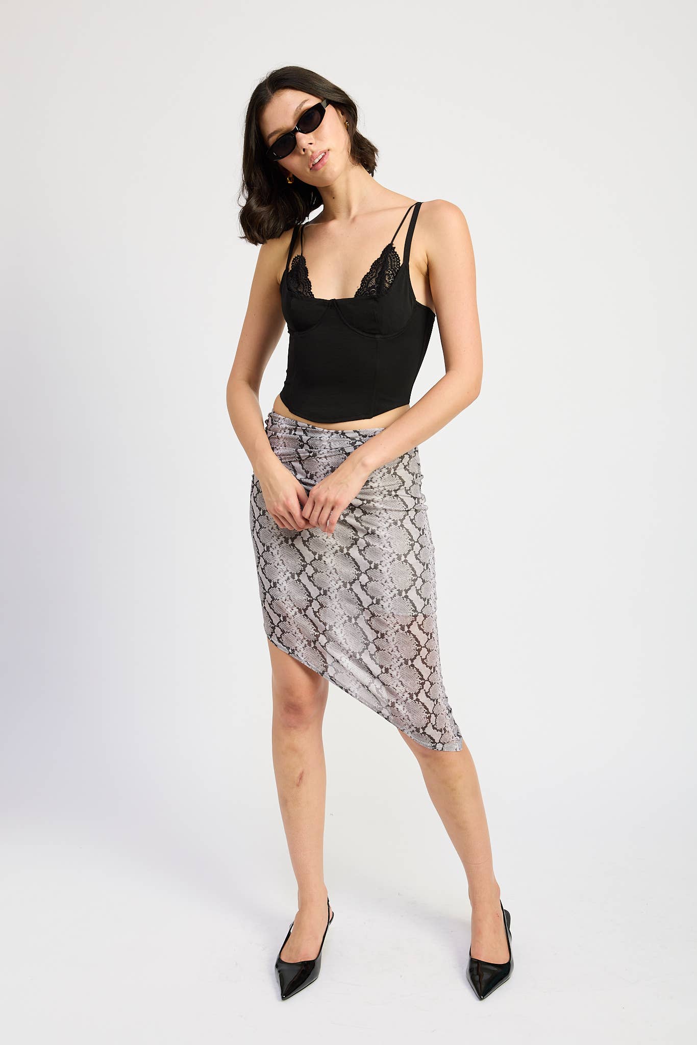 Sleek, sculpting, and undeniably chic—this lace-trim corset cami is designed to elevate your night-out wardrobe with ease. Featuring a structured, corset-inspired silhouette and delicate lace detailing along the neckline, it creates a flattering, feminine shape that feels both modern and timeless.