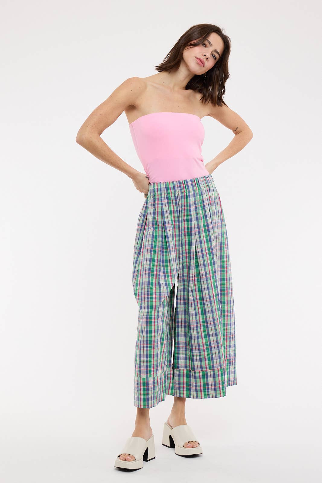 Plaid Wide-Leg Pants