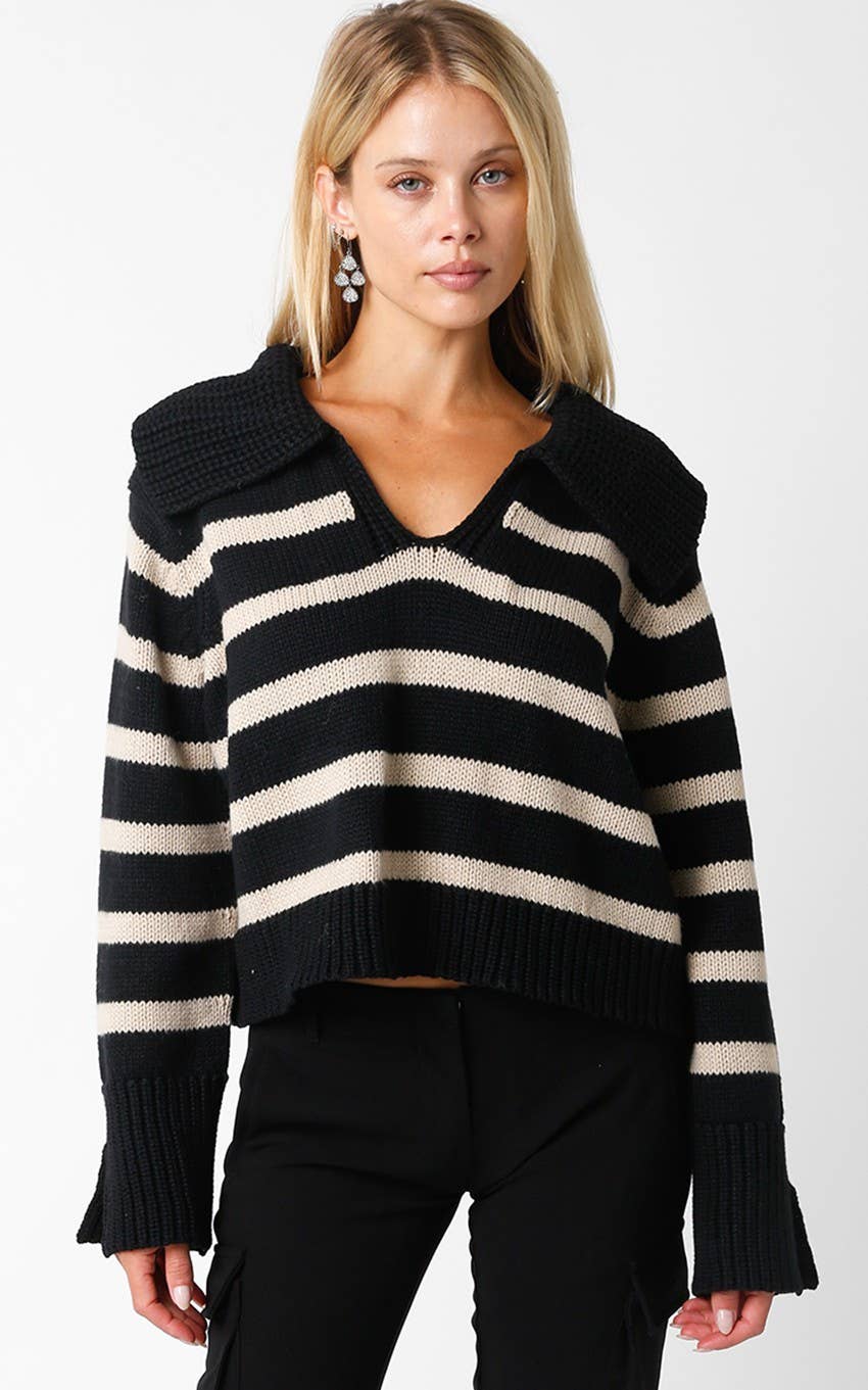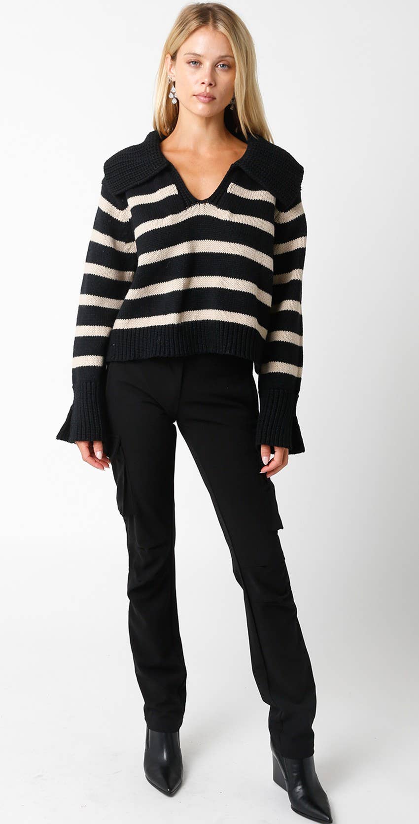 Our Sylvie Sweater features a v-neck and a relaxed fit Knit.